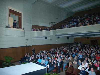Os mil lugares do Teatro-Cine não chegaram para acolher todos aqueles que quiseram assistir à segunda edição do Moda e Música, organizado pela Associação Recreativa Musical Covilhanense, no último sábado. “Há dois anos, quando realizei aqui o primeiro concerto, estavam três pessoas na sala. Hoje está repleto”, disse Eduardo Cavaco, presidente da direcção da Banda da Covilhã, dedicando o concerto ao seu pai, que o levou para a música. Inserido nas comemorações do 25 de Abril na Covilhã, o espectáculo reuniu moda, teatro, danças de salão e música baseada no novo reportório da Banda da Covilhã, com música portuguesa, ligeira, rock e latina, um desfile de moda para apresentação da colecção Primavera/Verão, de várias lojas comerciais. A divulgação do nome das lojas foi feita através de uma conversa entre vizinhas apressadas para assistirem ao desfile, numa representação do Rancho Folclórico da Boidobra. O maestro Eduardo Cavaco chegou ao palco descendo por uma corda. Estes foram dois dos aspectos inovadores do espectáculo que durou mais de duas horas. No átrio do Teatro-Cine estavam expostos trabalhos de alunos da licenciatura Design de Moda da Universidade da Beira Interior. In: www.diarioxxi.comNOTA - Reportagem fotográfica disponível amanhã.